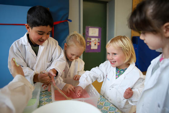 Kinder in Kitas experimentieren mit Mitarbeitern von Chemikum und Pharmaunternehmen GSK
