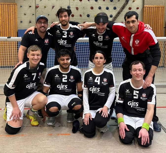 Goalball-Team SSG Blista Marburg obere Reihe von links mit Lucas Daniel, Mostafa Alizade, Bernold Sann, Kürsat Özdemir. Untere Reihe Jonathan Krieg, links, Tamim Raufi, jelan Alkhalaf, Sebastian Hofmann. Foto nn