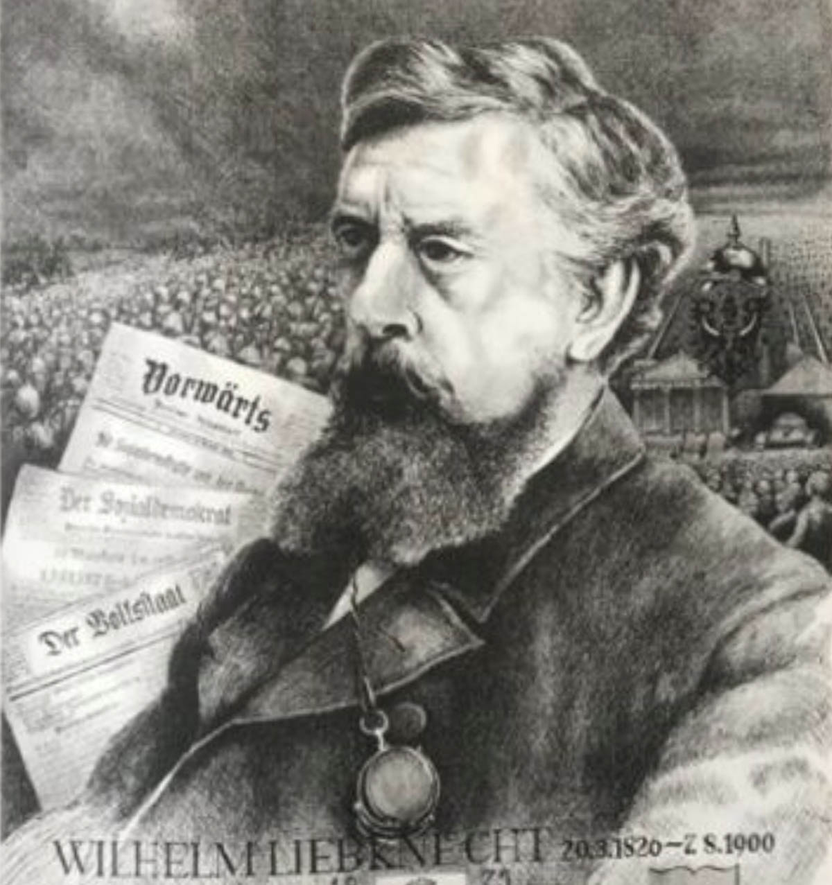 Wilhelm Liebknecht war einer Gründerväter der Sozialdemokratischen Partei Deutschlands. Am Sonntag, 29. März um 16 Uhr startet ein Stadtspaziergang mit Dr. Ilina Fach, Dr. Gert Meyer am Brunnen vor dem Marburger Rathaus.